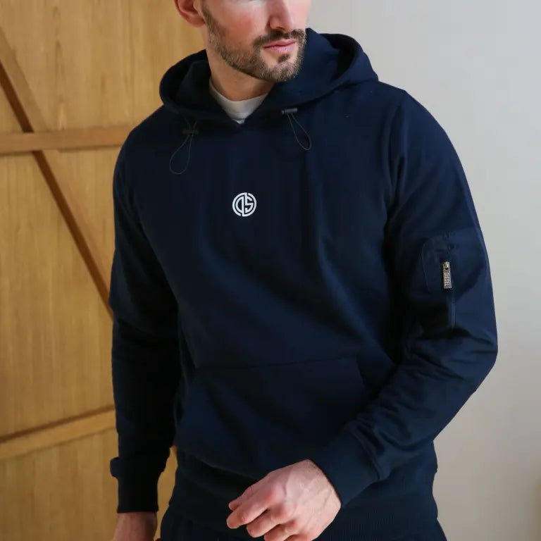 Featuring an adjustable drawcord on the hood and zipped pocket sleeve detail. This midweight top also features a kangaroo pocket on the front and rubberised logo.