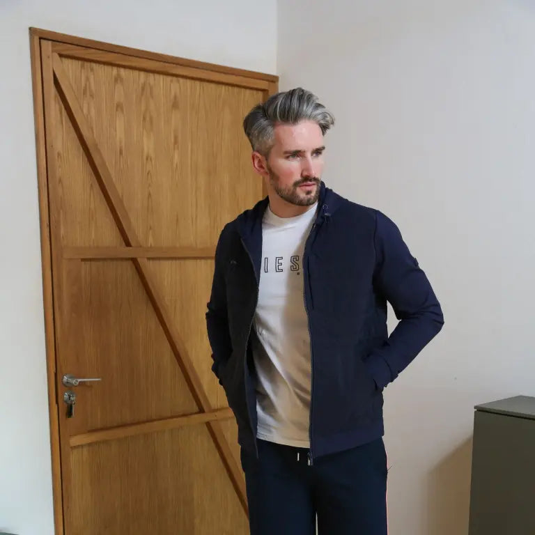 The Asher zip jacket in navy is the perfect go-to hybrid jacket this Autumn.