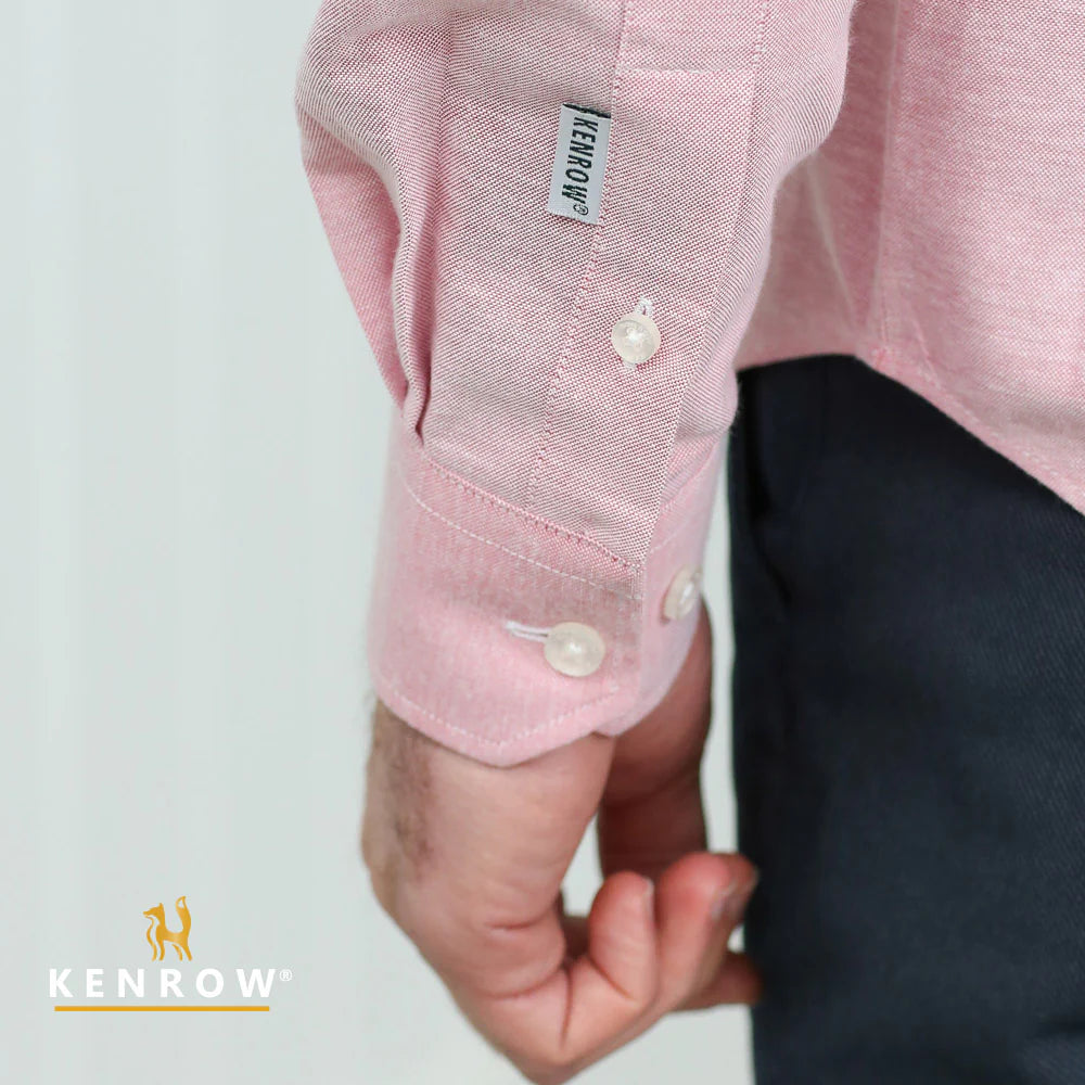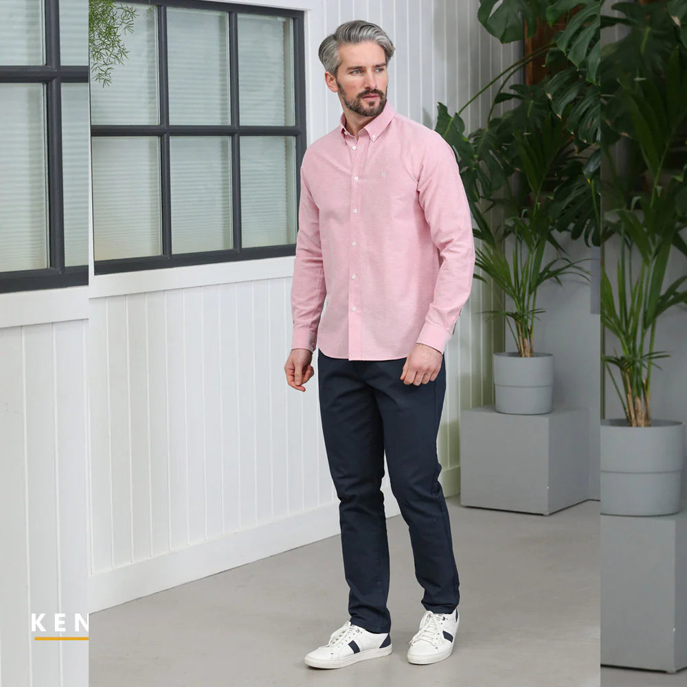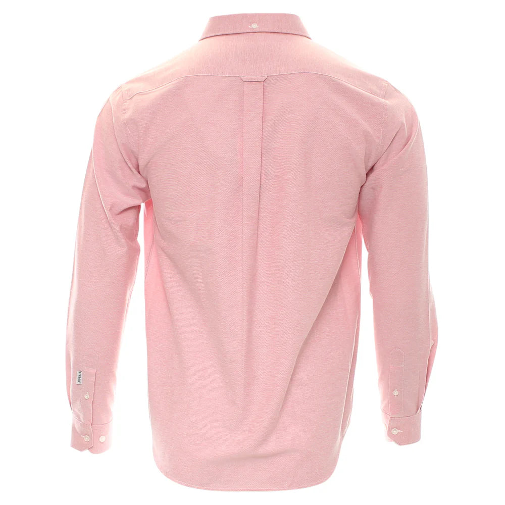 A rich brick melange Oxford shirt with subtle texture.