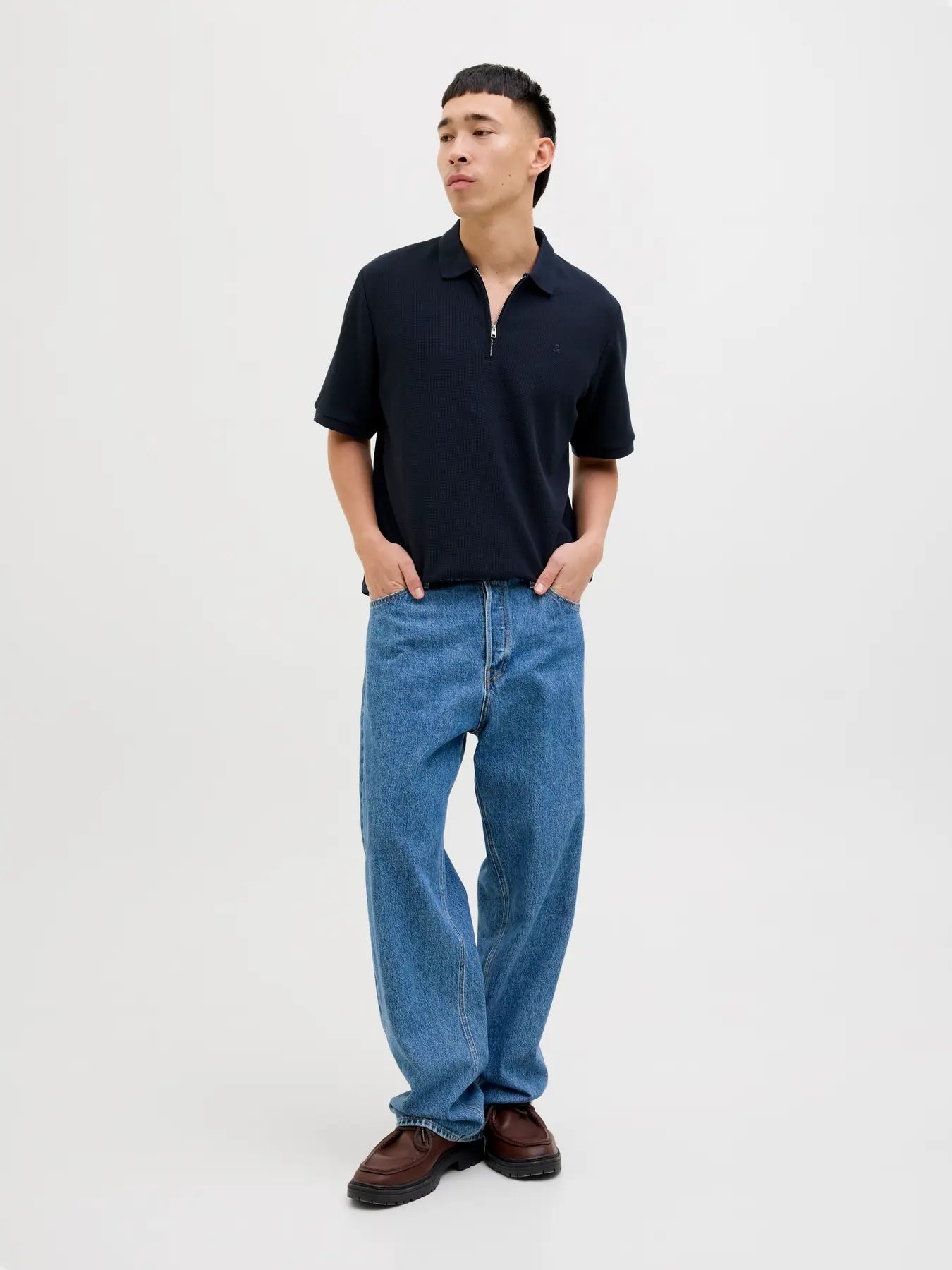 Classic men's polo shirt in waffle textured cotton knit.