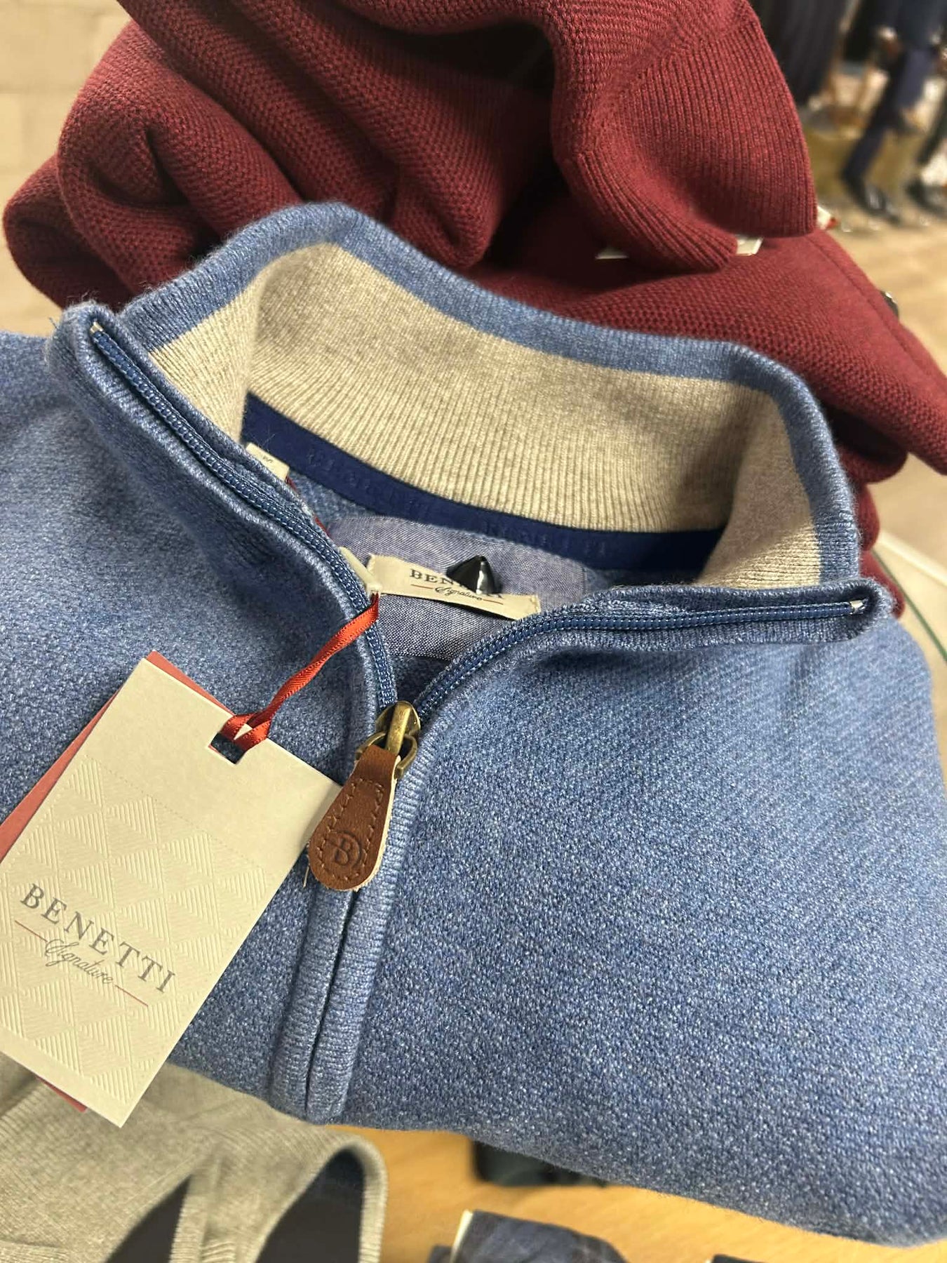 The Benetti Quinn quarter zip knit delivers timeless versatility with a modern edge. Crafted in a soft cotton blend and finished with a clean half-zip collar, it’s designed to move effortlessly between smart and casual looks. Available in core colour ways, Quinn is a staple for every season.