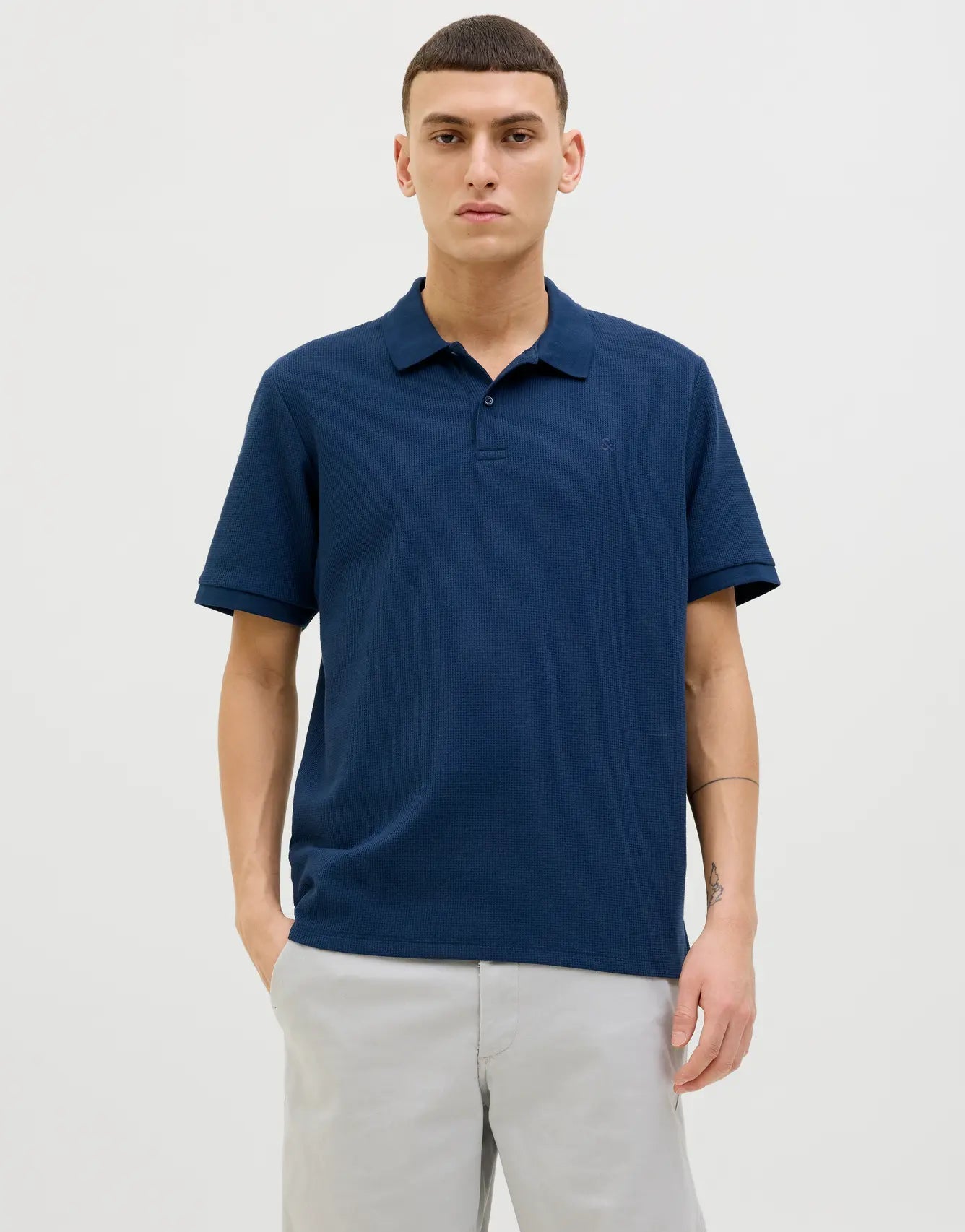 Textured cotton mens polo shirt from Jack And Jones in neutral stone colour.