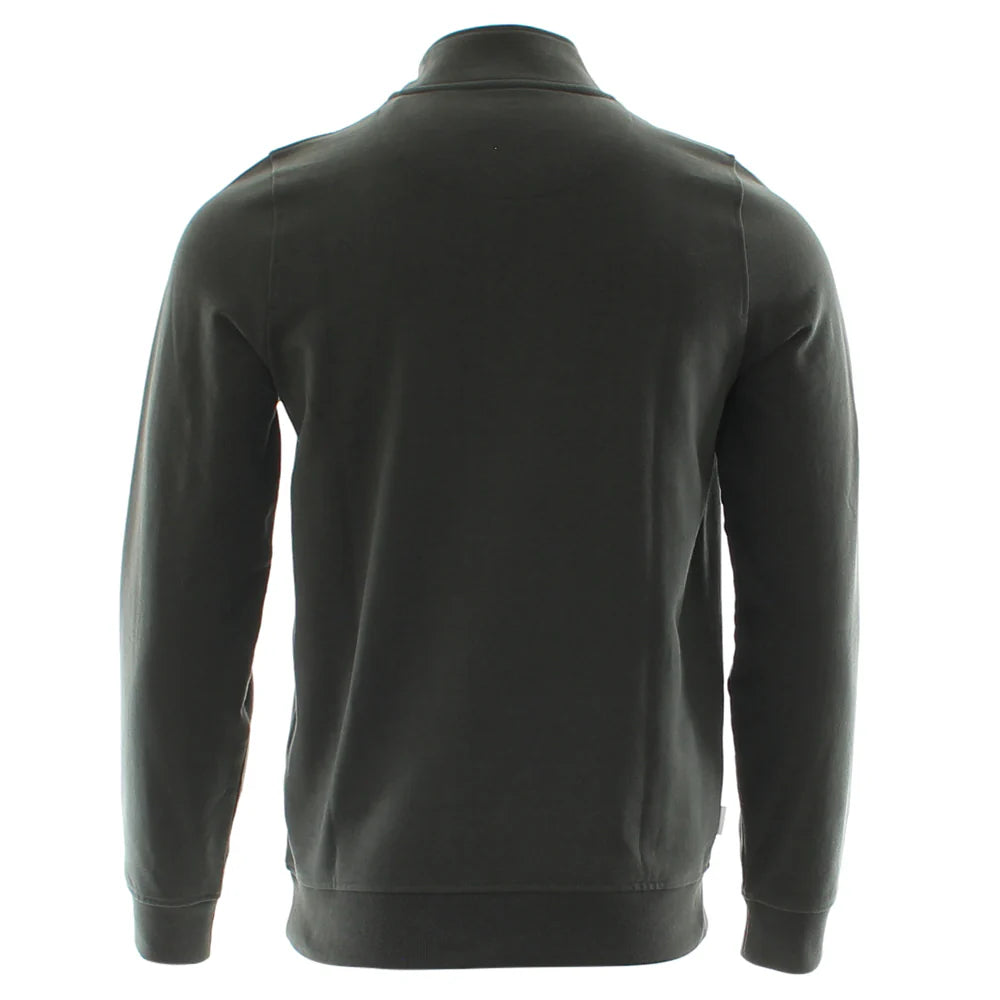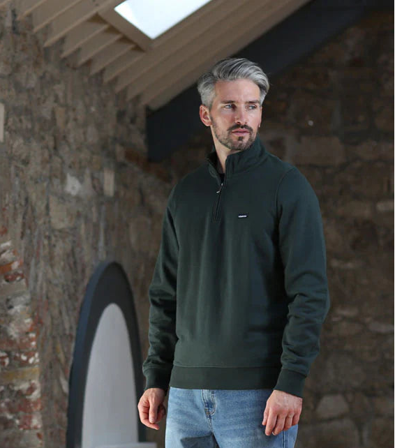 Kenrow Caleb Half Zip in Dark Olive. This stylish green sweater features a modern half-zip design, perfect for layering or wearing on its own. Crafted from soft, breathable fabric, it offers comfort and warmth without sacrificing style. The rich olive hue pairs effortlessly with jeans or chinos, making it a versatile addition to your collection.