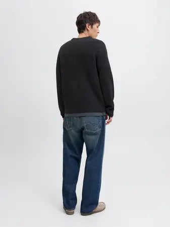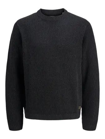Mid weight men's crew neck sweater with two-tone ribbed design in black and charcoal marl.