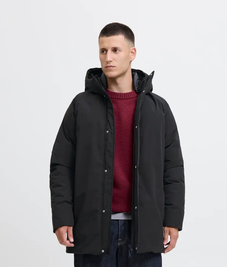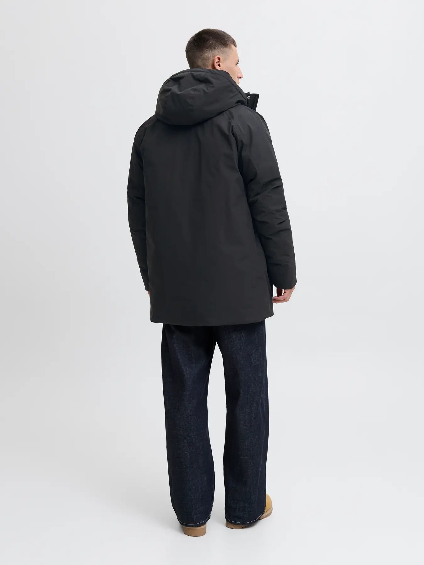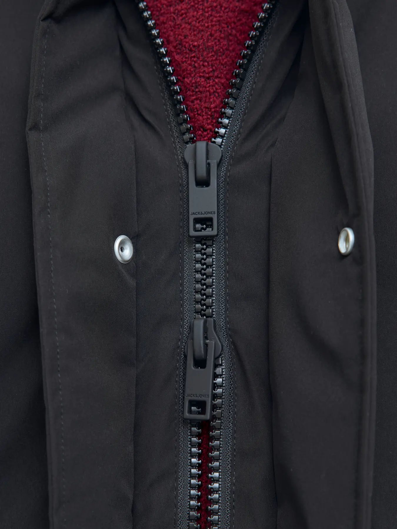 Brave the elements with ease this Winter with this water repellent parka coat from Jack And Jones. Fully lined with a fleece lined hood and zipped side pockets this coat will keep the chill away. Featuring a double ended concealed zip and stud fastening placket.