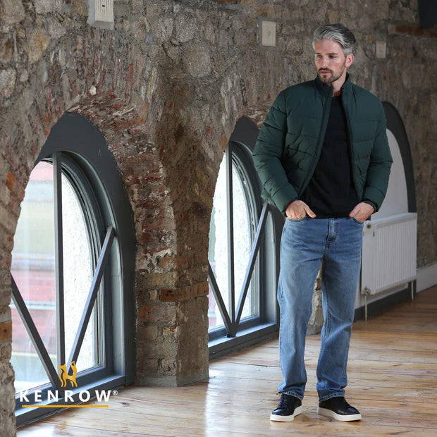 A versatile dark olive green jacket with clean lines and a tailored fit, perfect for layering through transitional seasons.