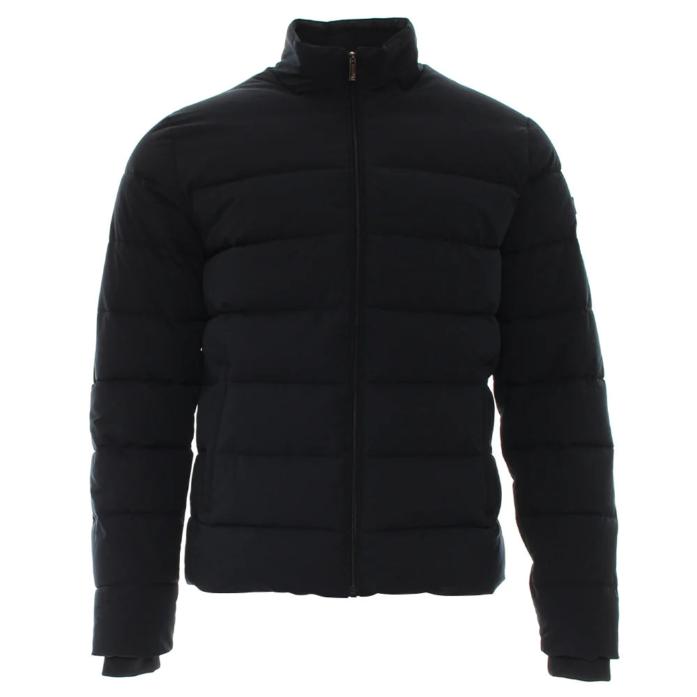 A versatile navy jacket with clean lines and a tailored fit, perfect for layering through transitional seasons.